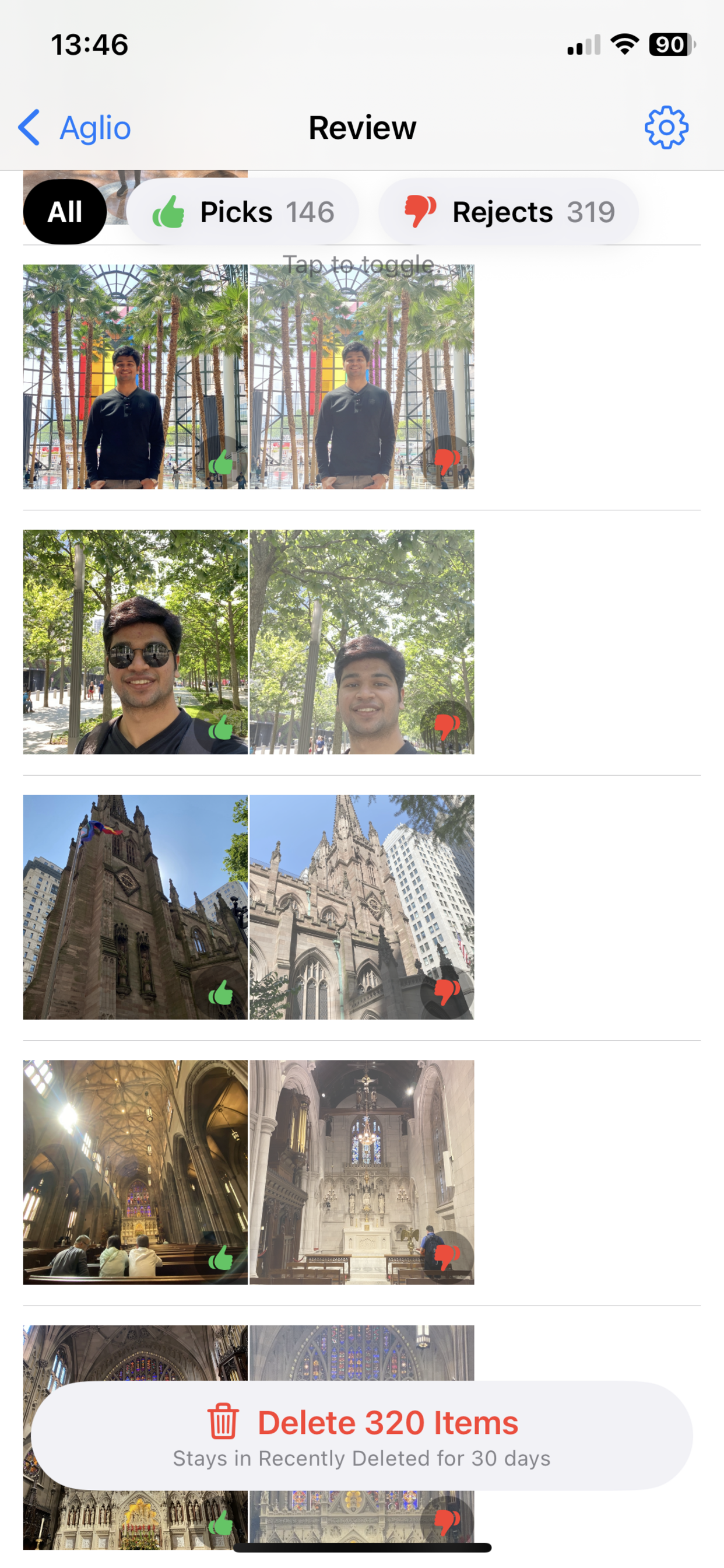 Aglio groups your shots, surfaces the best ones, and makes cleanup a gentle final step—not a weekend project.